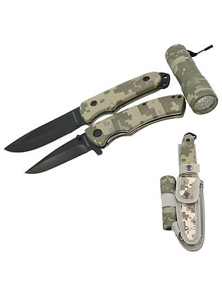 CUCHILLO 8.5 PULG + NAVAJA DOBLAR + LAMPARA LED + FUNDA TACTICA LDK 010722-CA